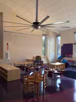 Engineers at Big Ass Solutions created a mock classroom at the company's R&D Lab to study the problem, and developed a custom solution for the project. The highly efficient fans distribute naturally cooled air to keep students and staff comfortable while maintaining the school's impressive green credentials.