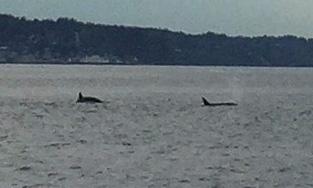 10:44 a.m. - They are still hanging out here by the ferry. About a mile off Clinton ferry dock...Looks to be at least 2-3 one is an adult and heading towards Everett, mid channel... I was coming fromMukilteo and about a 3/4-1 mile from Clinton and they were to the north of us heading towards Everett/hat island area but I looked for them when I got to Clinton and couldn't see them anymore 8:19 a.m. - Orcas this morning in the middle of the Clinton/Mukilteo ferry route. I think going south towards Edmonds. I work on the ferry and will keep a lookout. Melissa Simmons - 8:14 a.m. - Just saw a few orcas near Clinton ferry terminal. Heading south. Maybe two, male and female. We were on the ferry about 1/4 mile or less from the terminal. The boat stopped before landing and we all wondered why, when my friend noticed something in the water and I saw the big male dorsal fin. We just happened to be sitting on the right side of the ferry! Jill Irwin |