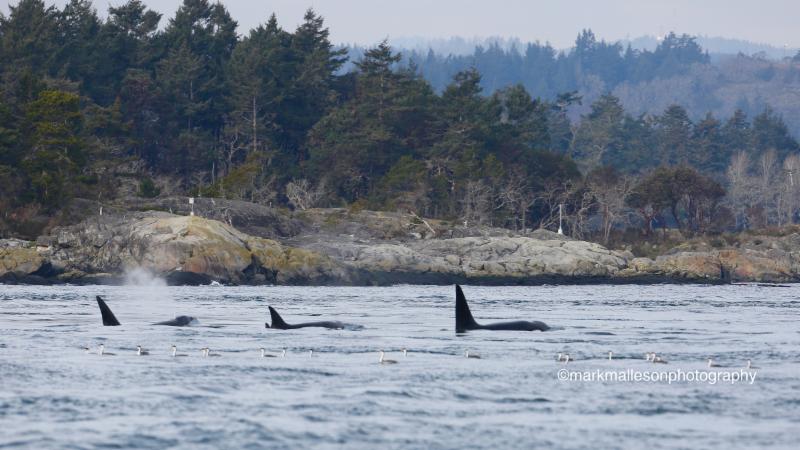 | The T085's were off Victoria on the morning of January 26th. They headed west out Race Passage turned around and were last seen heading east east of Race Rocks. I hadn't seen them since January 22nd 2011 according to CWR records. Photo by Mark Malleson, January 26, 2017 |