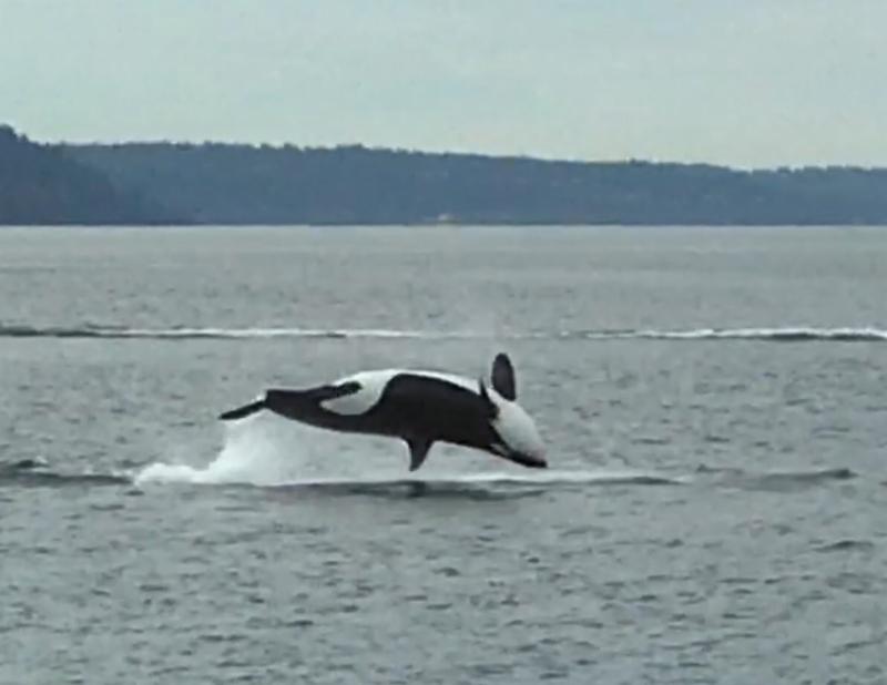 | Beautiful back-flipping orca in Possession Sound near Everett. Photo by Charlene Day, January 28, 2017 |