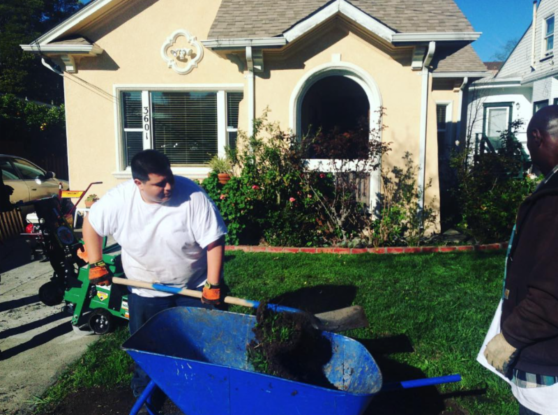 In other staffing news: The Transform Your Yard team is excited to be growing our leadership and training two new Site Leaders, George Britton and Dana Mitchell. George Britton returned from San Quentin in January 2015, and has excelled since his first day with Transform Your Yard! With a background in construction, George has taken quickly to building raised beds and installing irrigation systems. Dana Mitchell, a native of Oakland and Richmond with a deep passion for health, fitness and sustainability, spent a few years working as a general contractor and brings his wealth of knowledge, positive attitude, and calm, centered energy to our team. Dana and George are amazing emerging leaders!