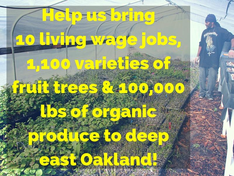 On Sunday, April 17th, we will launch our crowdfunding campaign to raise $150,000 to buy 2 acres of vacant land in deep East Oakland, where we will build an urban food production hub that create access to living-wage jobs and nutritious, affordable food for the Sobrante Park neighborhood.