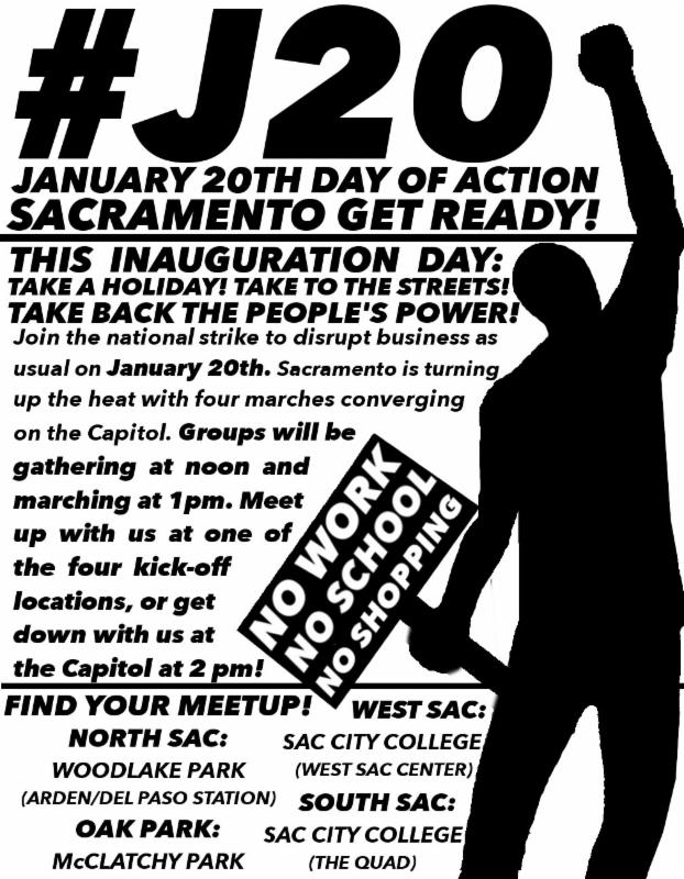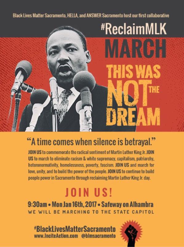 Things are really heating up in Sacramento next week. On Monday, January 16th there is a large Reclaim MLK march where organizers will take to the streets in honor of MLK's legacy of fighting the violence of white supremacy and capitalism and the current manifestation of these oppressive systems. Then on January 20th, there will be a day of action in opposition to the Trump presidency. We know that Sacramento is situated differently then other cities in California as the capitol of the state. Join us in rising up and demanding a future where we can all thrive.